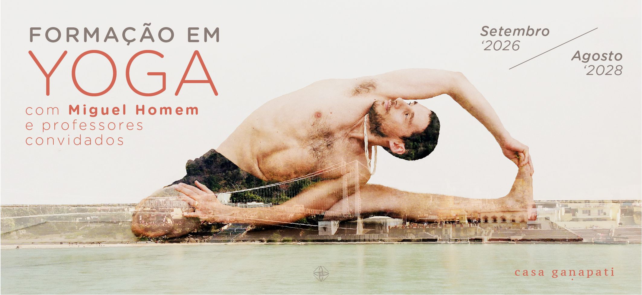 Miguel Homem fez o curso completo de formação para instrutores de yoga com Pedro Kupfer no Brasil 2004/5 e em Portugal 2008/9. Aprofunda-se no estudo e prática de āsana segundo o método Iyengar de 2004 a 2011 com Cláudia Villadelprat e outros professores. Fez formação em aṣṭaṅga vinyāsa yoga com David Swenson e com Manju Jois e pratica regularmente com o seu professor Tomas Zorzo. Em 2005 conheceu o seu Mestre Pujya Swami Dayananda com quem aprendeu vedānta regularmente até ao seu Maha Samādhi, assim viajando para estudar na índia de 2005 a 2015. Desde 2006 traz regularmente a Portugal a Prof. Gloria Arieira com quem mantem o estudo de vedānta, sânscrito e shaṅkara bhāṣyam. Em 2007 conheceu Ganga Mira, assistindo regularmente aos seus satsaṅgas desde então. Em 2012 completou o curso de yoga e ayurveda de 300h com David Frawley, reconhecido pelo American institute of Vedic Studies. Miguel dedica-se ao estudo, prática e vida de yoga há cerca de 20 anos, continua a estudar regularmente, continua a ouvir o que o Swamiji ensinou, continua a aprender e manter uma relação estreita com as suas Mestras por quem tem um carinho, respeito e admiração sem fim. Miguel continua a estudar com os seus professores e ainda a viajar para a Índia, anualmente, para visitar lugares sagrados, aprender, praticar, ensinar e tudo o mais que a Índia traz. Ensina yoga, sânscrito, mantras da tradição védica e vedānta regularmente na Casa Gaṇapati, dando aulas semanais e conduzindo cursos, retiros e extensivos.