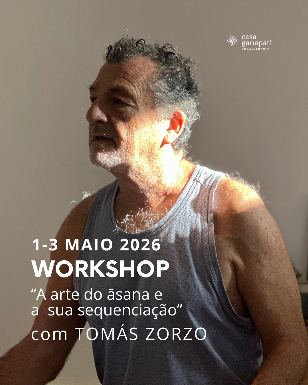 Com uma vida dedicada ao Aṣṭāṅga Vinyāsa Yoga, Tomás tomará por base em alguns momentos a dinâmica das suas sequências, no entanto, sem esquecer o seu percurso tão amplo, passado e recente, dentro do Yoga, nomeadamente o Yoga Integral, serão abordadas diferentes formas de estar na prática. O foco e o propósito esses são sempre um – trazer a atenção e a consciência para o presente, explorando a capacidade de nos observarmos de um ponto de vista mais subtil em que a escuta é o barómetro.