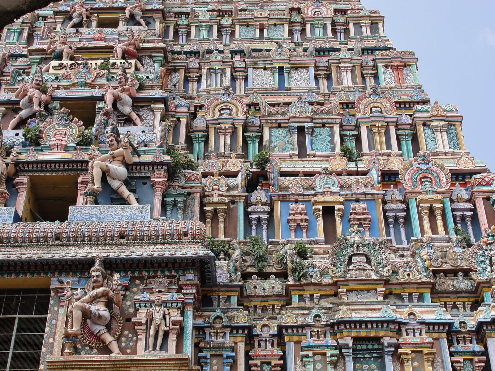 O Sul da Índia é famoso pelos seus templos. Caracterizados pelas milhares de esculturas de pedra nas suas paredes exteriores, representando divindidades ou cenas do quotidiano, podem ser coloridos ou não.
